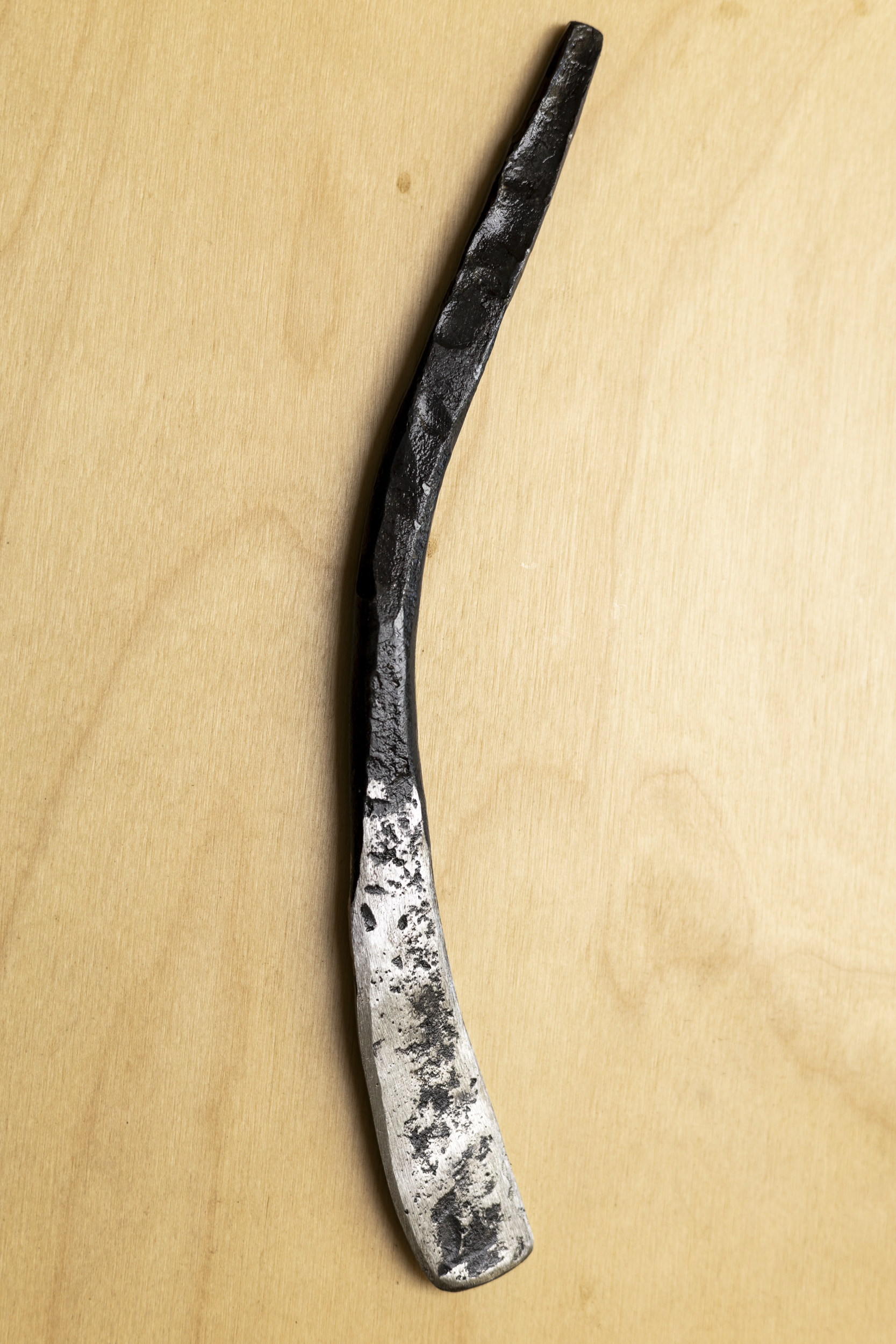 Long hand- forged pate spreader made by Nat Ord on a coke forge at Maragle, NSW