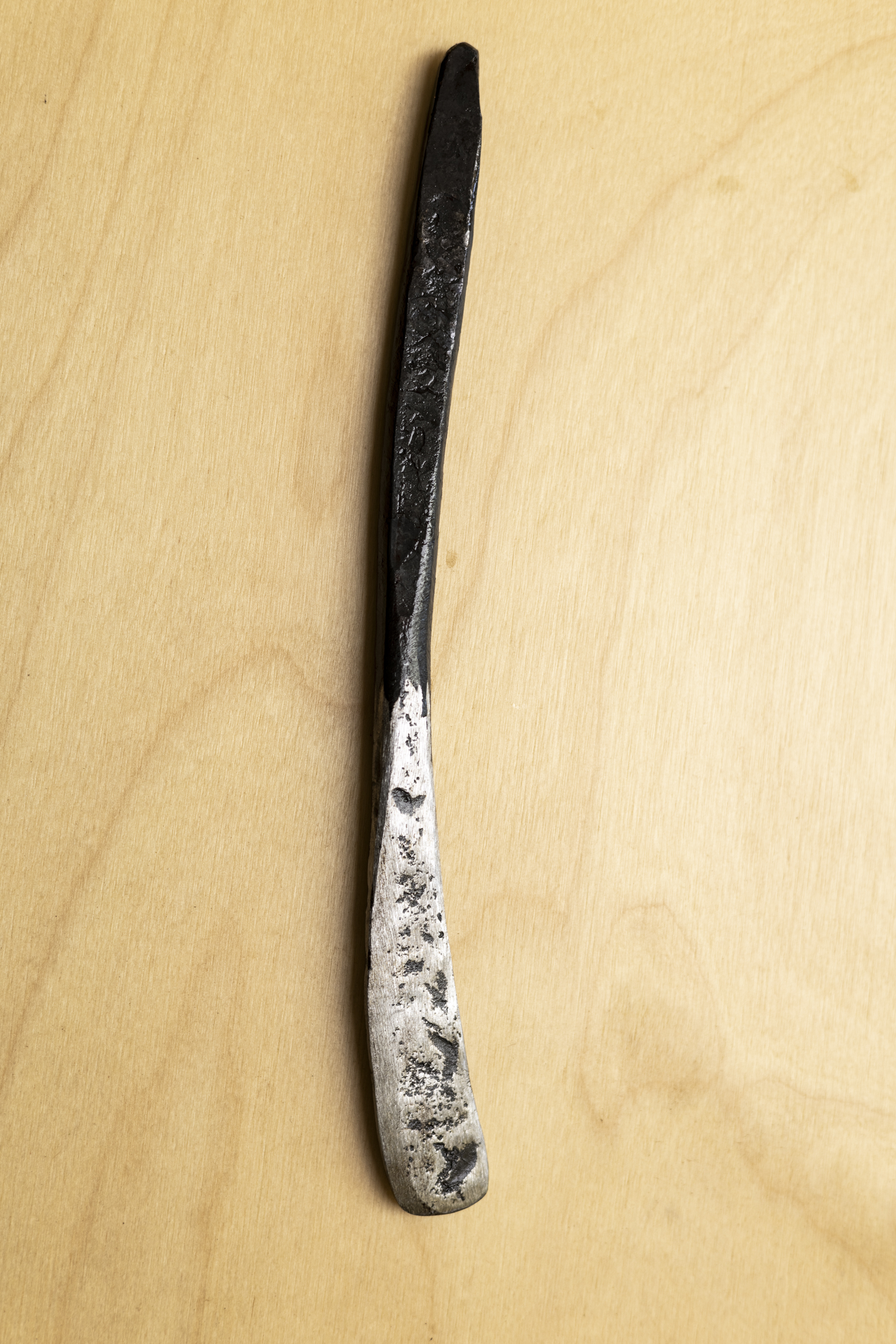 Long hand- forged pate spreader made by Nat Ord on a coke forge at Maragle, NSW