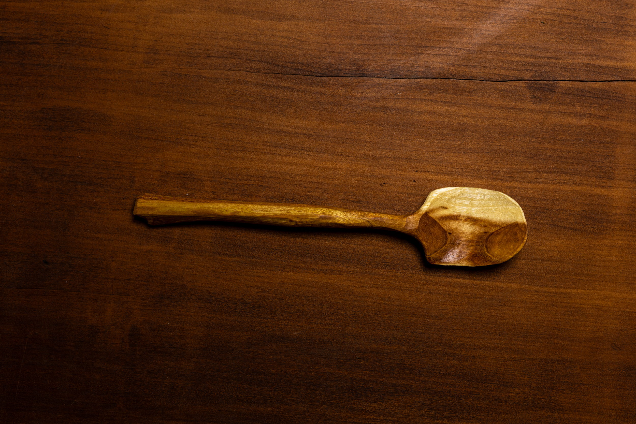 This exquisite eating spoon was hand-carved by Nat Ord right here in Chiltern, VIC. Made from richly grained Mulberry wood, this piece boasts a beautiful color and is perfect for tasting sauces, enjoying desserts, or as a unique everyday utensil. A small, durable, and naturally beautiful piece of functional art.